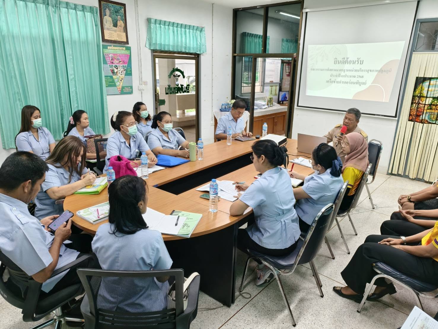 วันที่ 17 มีนาคม 2568 เวลา 08.30 - 16.00 น. คณะกรรมการพัฒนางานมาตรฐานหน่วยบริการปฐมภูมิ นำโดย นายวิรัลวิชญ์ รู้ยิ่ง สาธารณสุขอำเภอร่อนพิบูลย์ ติดตามเยี่ยมเสริมพลัง เพื่อให้สถานบริการจัดบริการปฐมภูมิ บรรลุเป้าหมายที่ต้องการ ทั้งการส่งเสริมสุขภาพ การควบคุม การป้องกันโรค การตรวจวินิจฉัยโรค การรักษาพยาบาล และการฟื้นฟูสภาพ รวมถึงการจัดทำแผนงานในการจัดบริการสุขภาพปฐมภูมิ ที่สอดคล้องกับลักษณะของผู้รับบริการ มีความเท่าเทียมในการเข้าถึงบริการ ปฐมภูมิ ณ โรงพยาบาลส่งเสริมสุขภาพตำบลบ้านขุนพัง และโรงพยาบาลส่งเสริมสุขภาพตำบลบ้านถลุงทอง