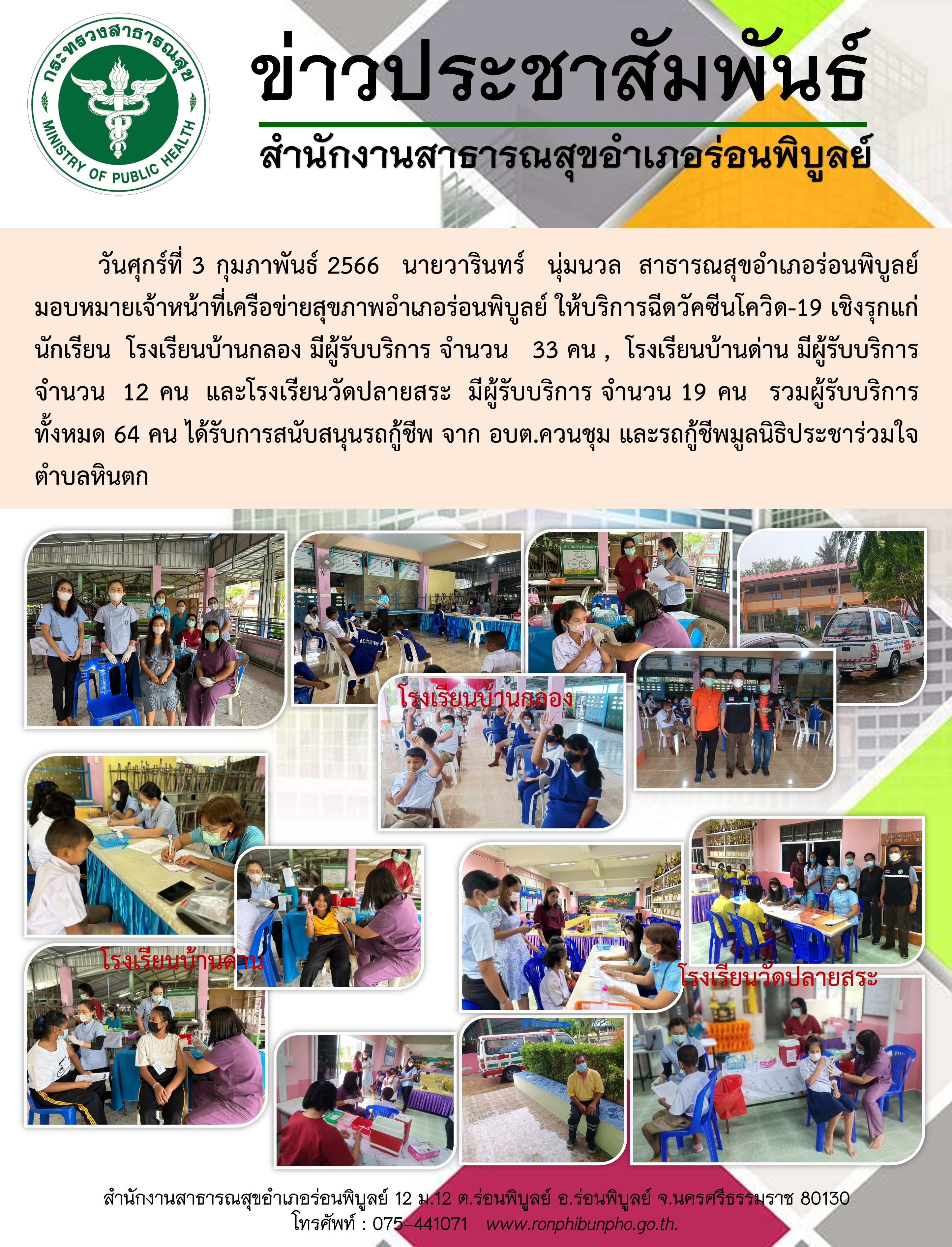 อำเภอร่อนพิบูลย์ รณรงค์ฉีดวัคซีนโควิด-19